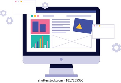 Mockup 3D monitor with user interface elements for web design Software creator. User interface, user experience design. A set of tools for creating UI UX. Web development. Vector illustration 3D style