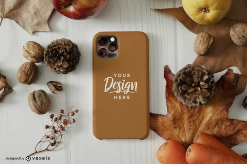 Brown phone case mockup autumn elements
