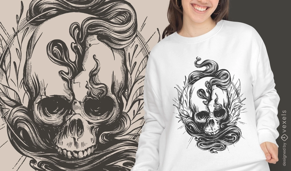 Cool t-shirt design that features a dark skull with cracks. Use this print ready design for tshirts, posters, mug, hoodies and other merch products. Eligible to be used on POD platforms like Merch by Amazon, Teespring, Redbubble, Printful and more.