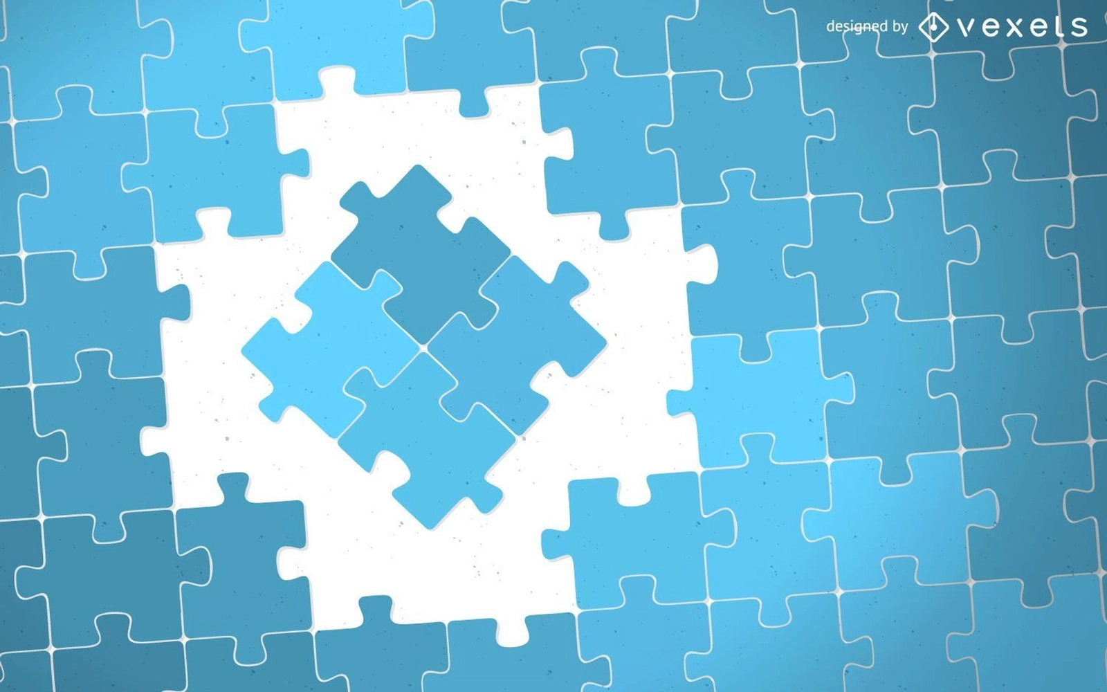 Illustrated puzzle that features some pieces put together and another few that aren't. Concept illustration in tones of blue.