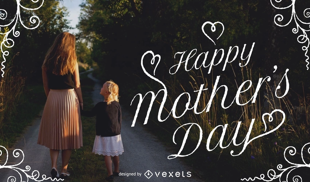 Mother's Day design featuring an image of a mother with her daughter. The design also includes ornamental decorations framing everything and it says Happy Mother's Day as well.