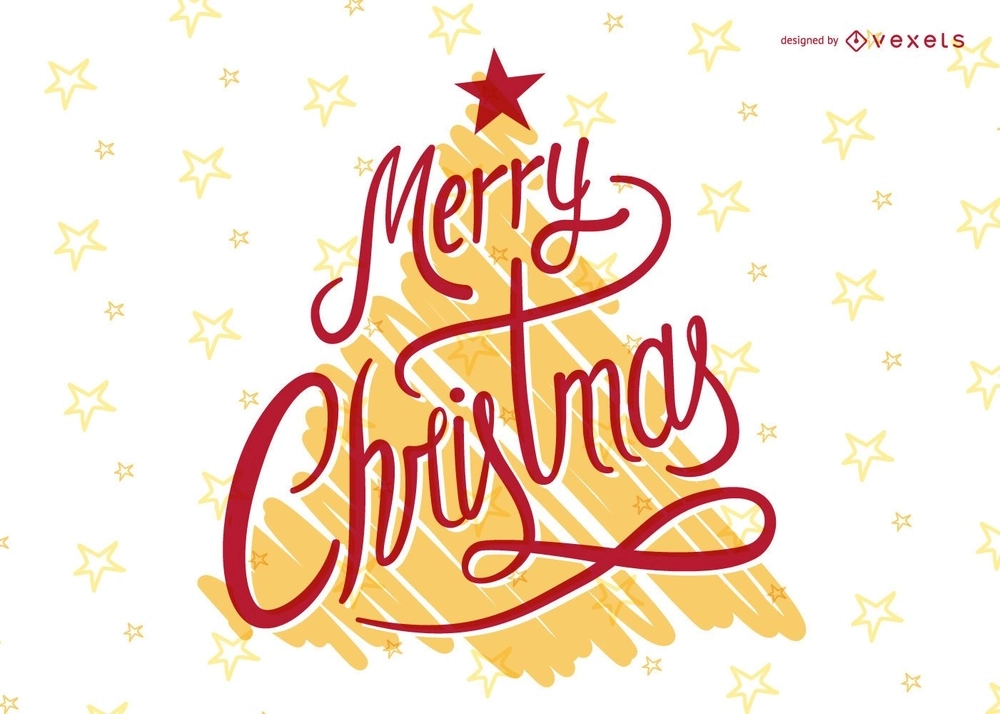 Great Christmas lettering design over a hand drawn tree. It says Merry Christmas and there are also stars.
