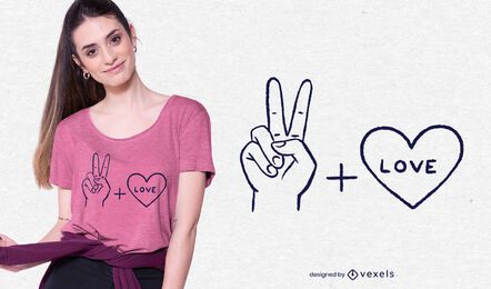 T-shirt design featuring a drawing of a hand doing a peace sign and a heart with the word LOVE inside. Can be used on t-shirts hoodies mugs posters and any other merchandise. Ready to use on Merch by Amazon and other print-on-demand platforms like Redbubble Teespring Printful and others.