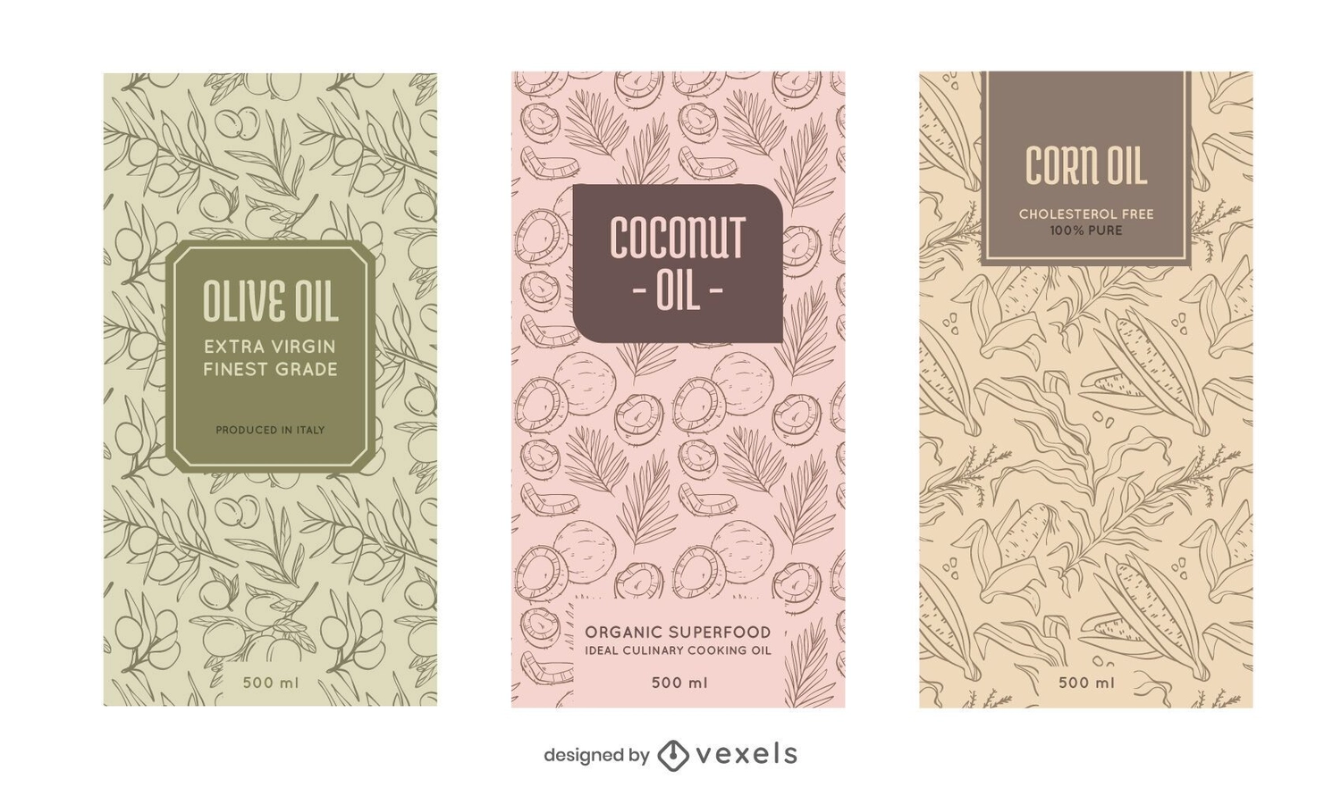 Amazing oil set design featuring three labels that include tileable patterns and editable text. Each one can be used individually enjoy!