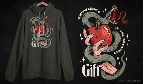 Cool t-shirt design of a hand holding an apple and a snake. Includes the quote "knowledge is the greatest gift". Can be used on t-shirts, hoodies, mugs, posters and any other merchandise. Ready to use on Merch by Amazon, and other print-on-demand platforms like Redbubble, Teespring, Printful and others.