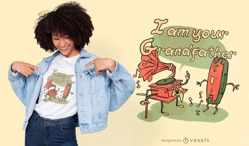 Great t-shirt design that features a phonograph elder character saying "I am your grandfather" to a digital music player. Can be used on t-shirts, hoodies, mugs, posters and any other merchandise. Ready to use on Merch by Amazon, and other print-on-demand platforms like Redbubble, Teespring, Printful and others.