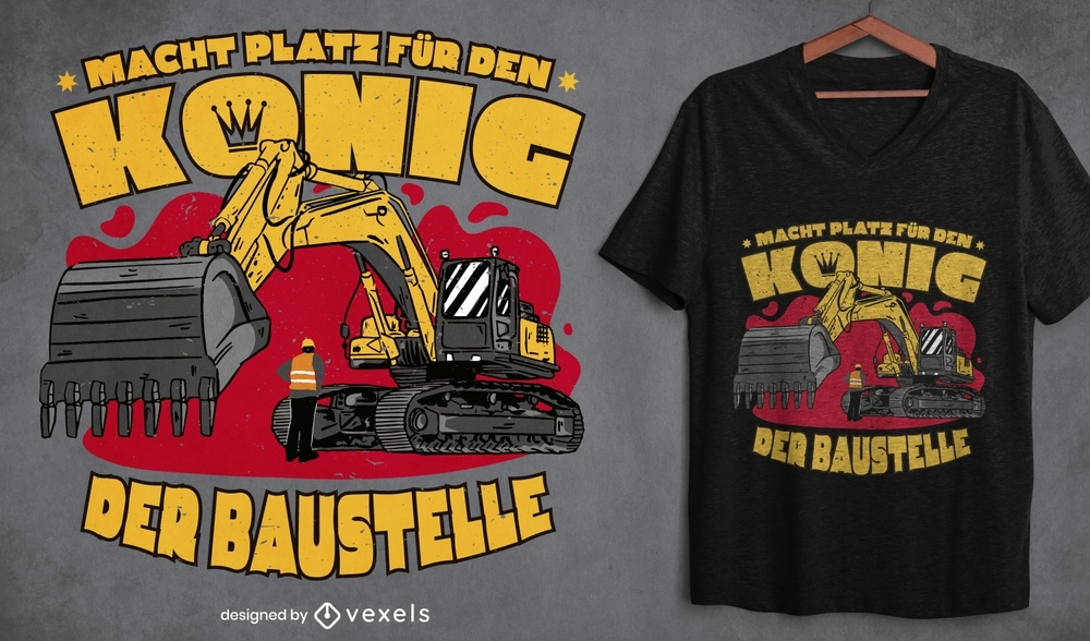 Great construction t-shirt design of an excavator and a man and the german quote "Make room for the king of the construction site". This Graphic Tee design can be used on shirts, mugs, posters, hoodies and other merch products. Comes with a transparent PNG file, perfect for POD platforms like Merch by Amazon, Redbubble, Teespring, Printful and more.