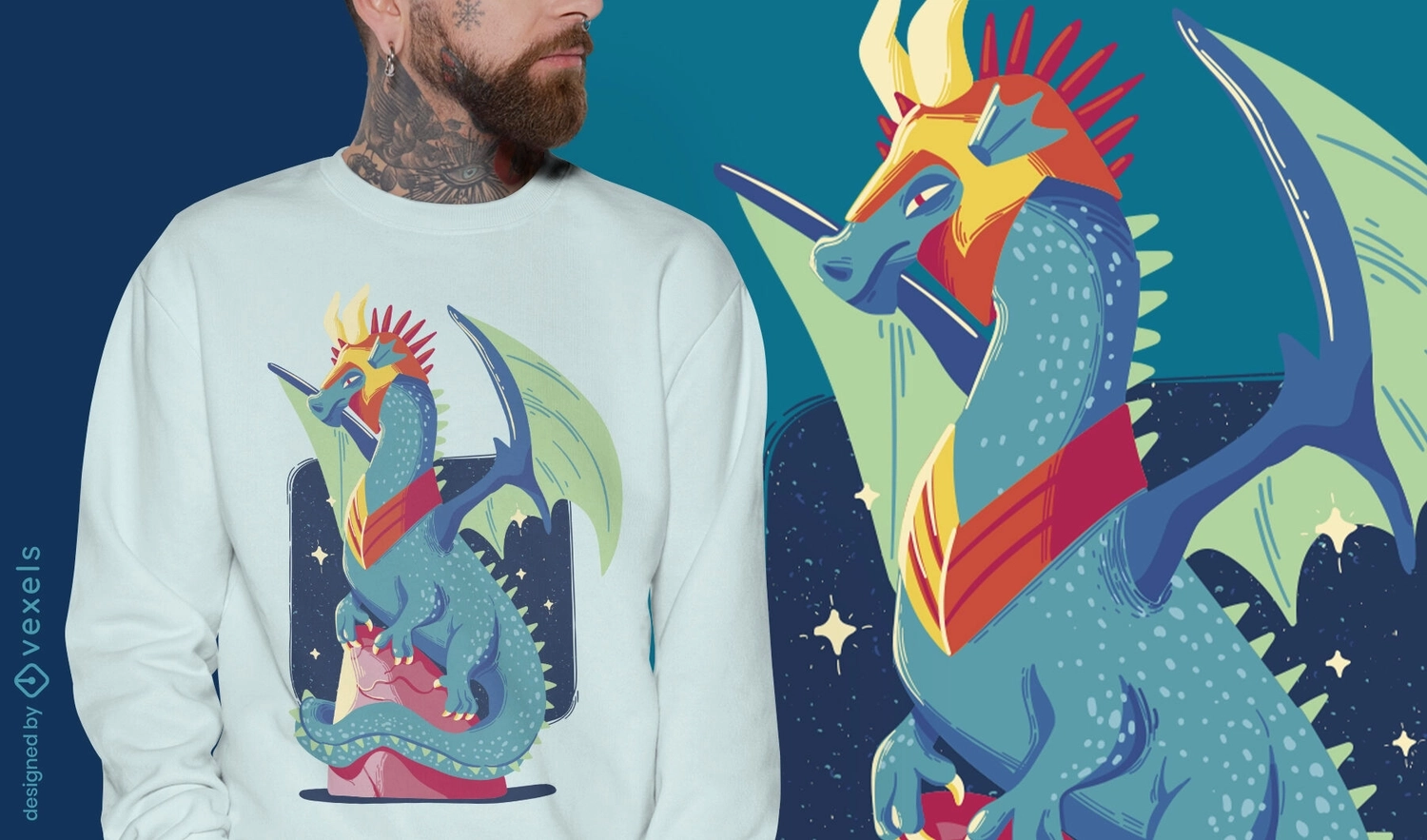 Awesome fantasy t-shirt design of a dragon with a helmet. Can be used on t-shirts, hoodies, mugs, posters and any other merchandise. Ready to use on Merch by Amazon, and other print-on-demand platforms like Redbubble, Teespring, Printful and others.