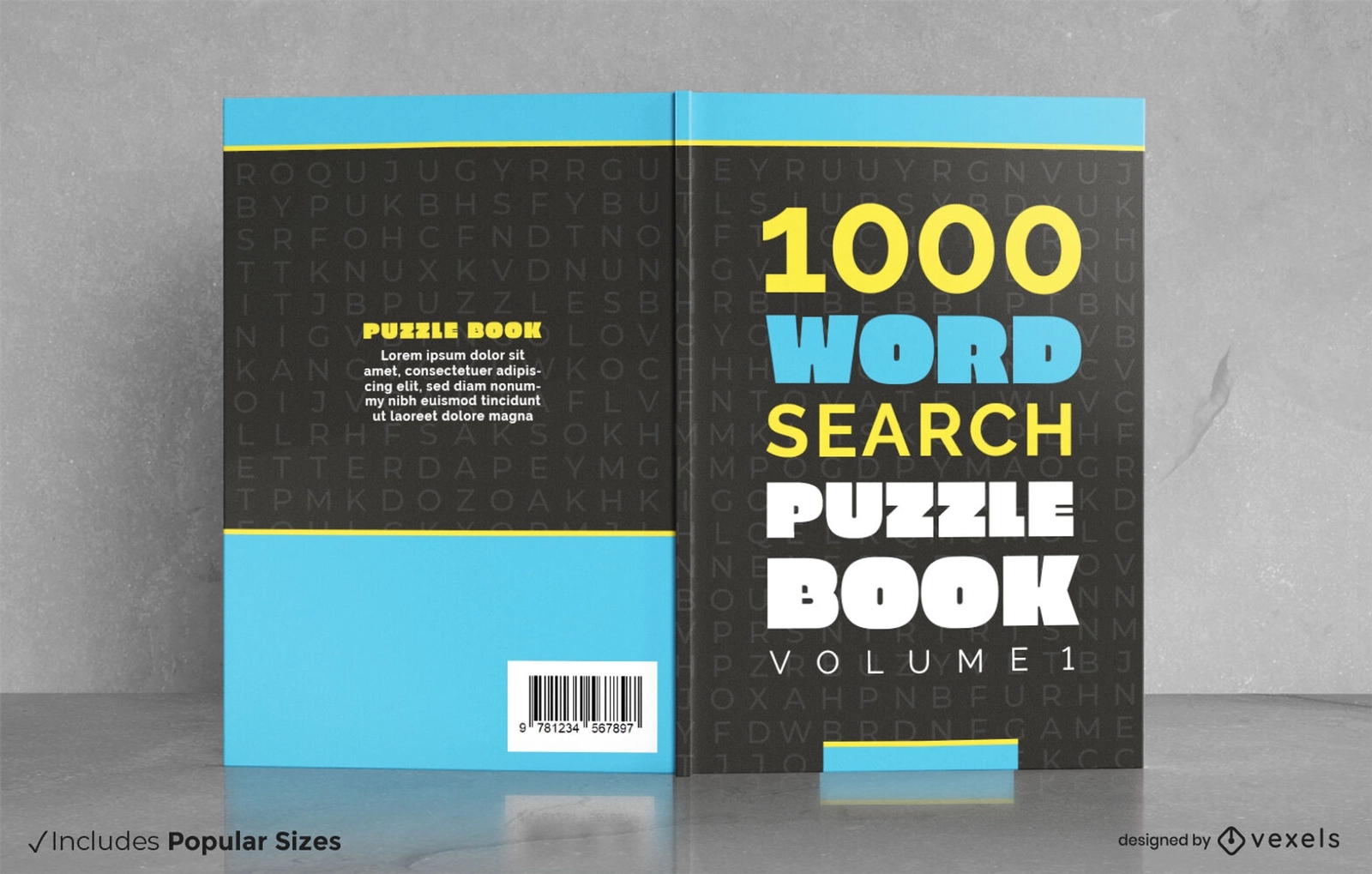Awesome book cover design featuring the title "1000 word search puzzle book volume 1". Check out our book cover templates, including front and back cover designs. This KDP (Kindle direct publishing) includes popular PDF cover sizes for a 100-page book.