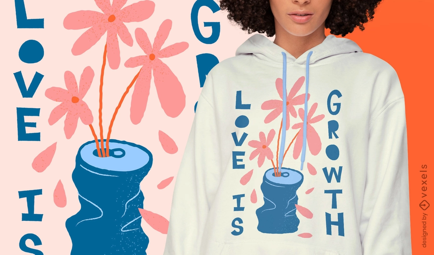 Pretty floral design featuring the quote 'Love is growth'. This Graphic Tee design can be used on shirts, mugs, posters, hoodies and other merch products. Comes with a transparent PNG file, perfect for POD platforms like Merch by Amazon, Redbubble, Teespring, Printful and more.