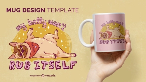 Awesome mug design featuring a pug belly up and the quote 'My belly won't rub itself'. Make your own mug with this amazing editable AI cup design. Comes with a JPG, AI and transparent PNG. Works great on any Merch POD platform!