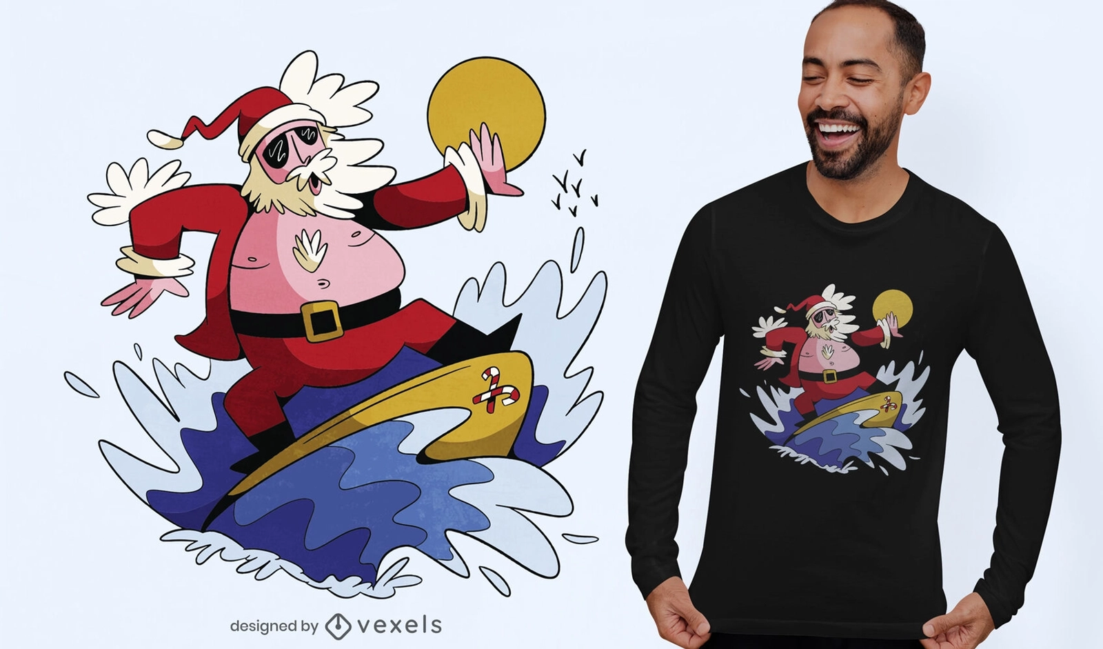 Cool t-shirt design that features santa claus on a surfboard. Can be used on t-shirts, hoodies, mugs, posters and any other merchandise. Ready to use on Merch by Amazon, and other print-on-demand platforms like Redbubble, Teespring, Printful and others.