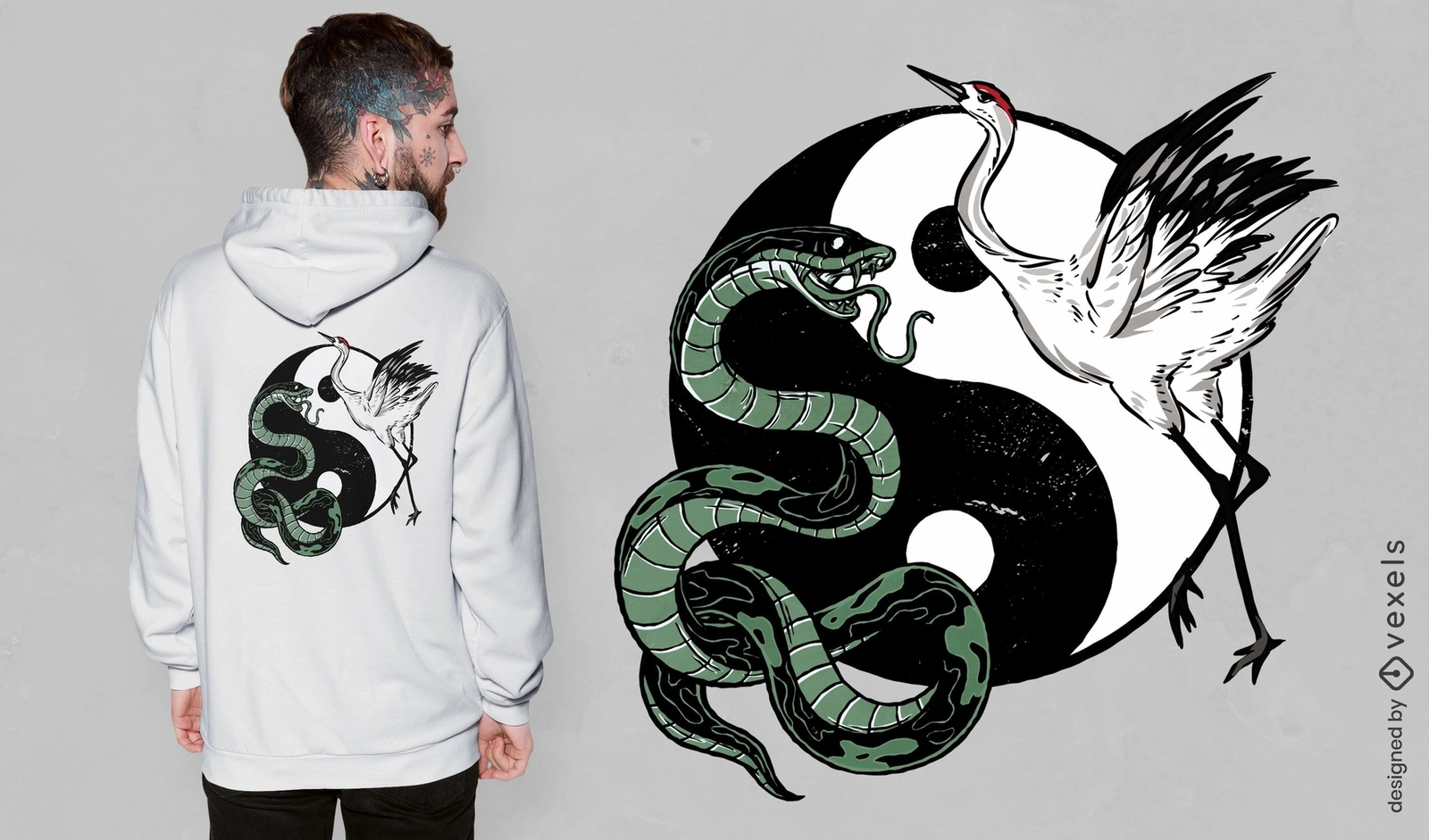 Yin yang snake and crane t-shirt design