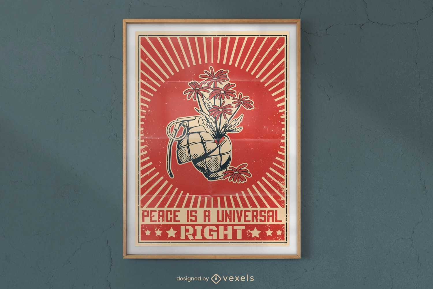 Great poster design that features a grenade with flowers and the quote "Peace is a universal right" in vintage style. Create your custom poster with this editable template, perfect for your business, event or party. Contains editable text, colors and more!