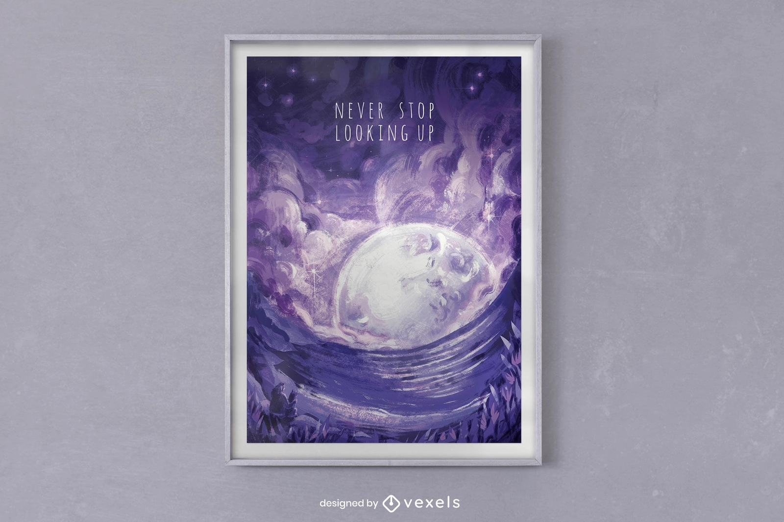 Amazing poster design that features a big full moon and the quote "Never stop looking up". Create your custom poster with this editable template, perfect for your business, event or party. Contains editable text, colors and more!