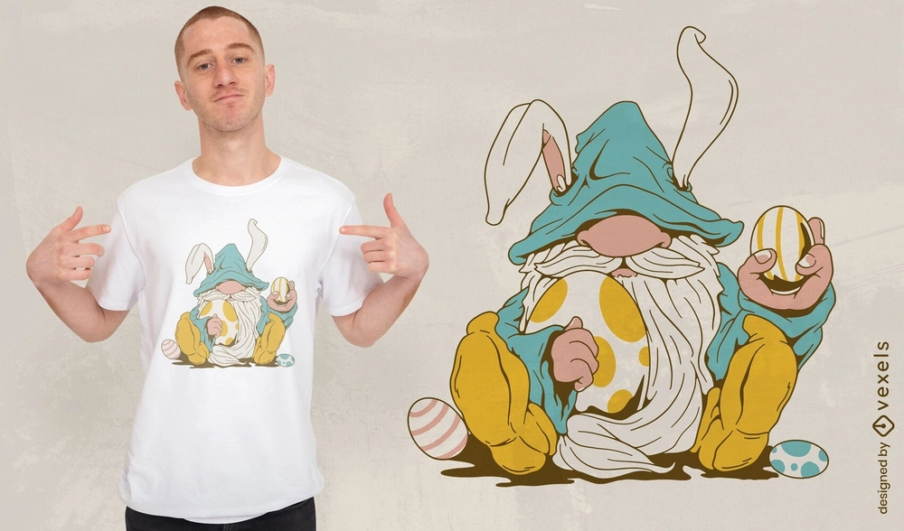 Lovely t-shirt design featuring a gnome with rabbit ears and easter eggs. Use this print ready design for tshirts, hoodies and other merch products. Eligible to be used on POD platforms like Merch by Amazon, Teespring, Redbubble, Printful and more.