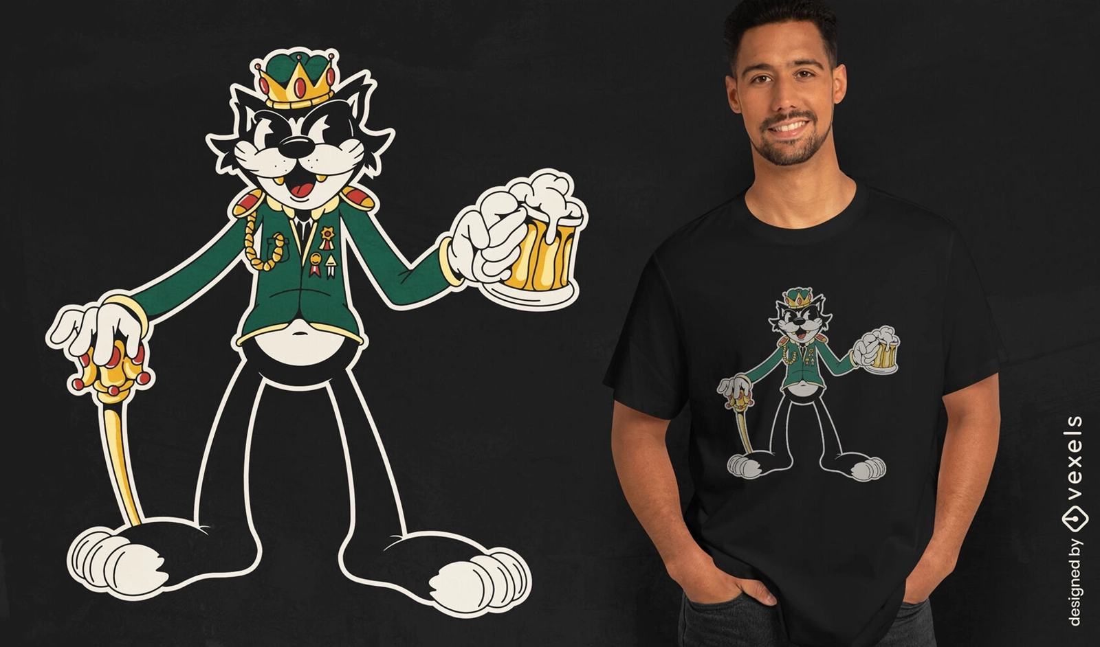 Cool t-shirt design featuring a cartoon cat character dressed in a marksman uniform, wearing a king's crown and holding a beer. Use this print ready design for tshirts, hoodies and other merch products. Eligible to be used on POD platforms like Merch by Amazon, Teespring, Redbubble, Printful and more.