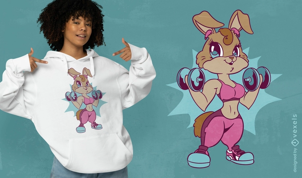 Awesome t-shirt design that features a fitness female bunny. Use this print ready design for tshirts, hoodies and other merch products. Eligible to be used on POD platforms like Merch by Amazon, Teespring, Redbubble, Printful and more.