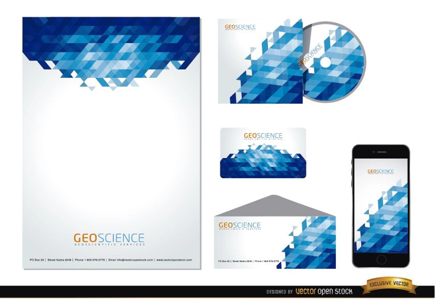 Set with a blue polygonal design for stationery elements like folders letter envelopes disc covers business cards and even phone backgrounds. If you want a creative corporative identity use these resources to make your own design. High quality JPG included. Under Commons 4.0. Attribution License.