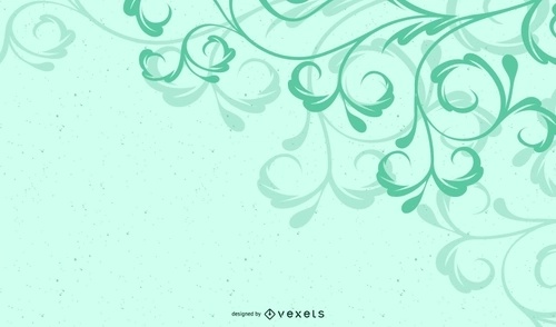 Swirly light green background with floral style. The design contains several swirling curly creeper leaves shiny rounded swirling frame and floral steams inside over a green backdrop.